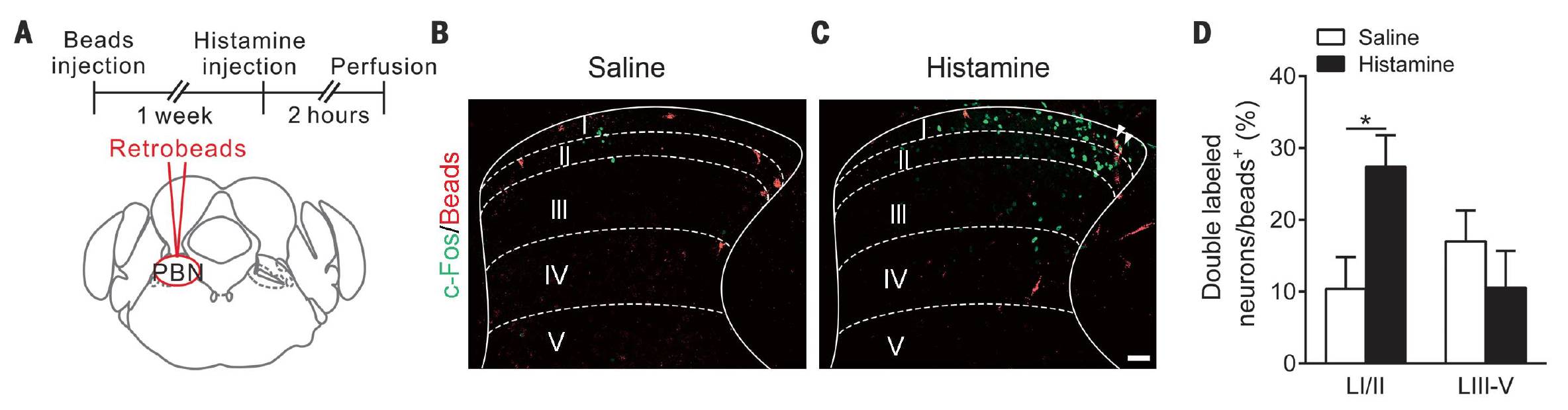 图1 脊髓-臂旁核投射神经元在痒的过程中活动增强