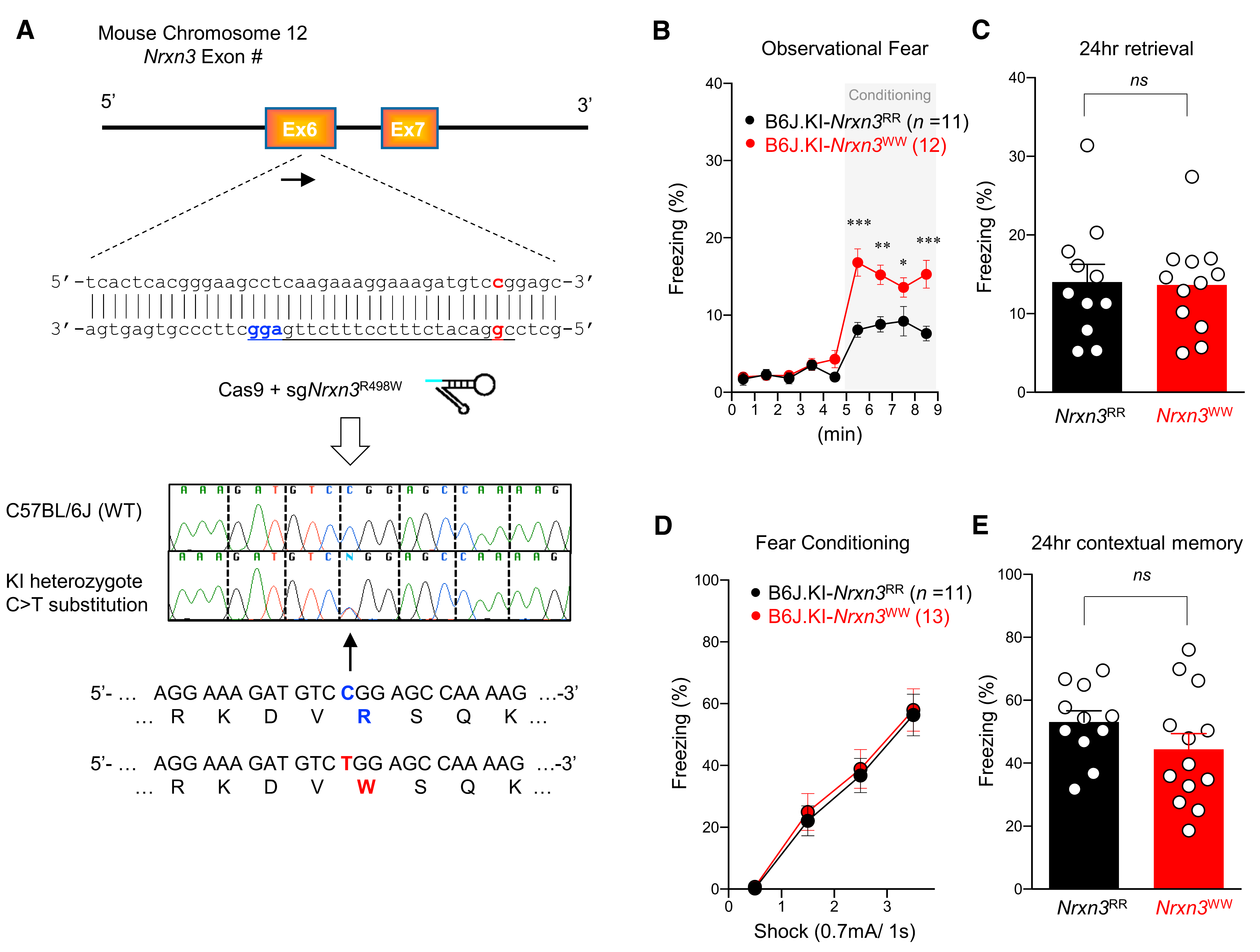 1.Keum, S., et al., A Missense Variant at the Nrxn3 Locus Enhances Empathy Fear in the Mouse. Neuron, 2018.