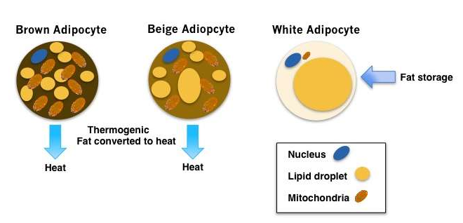 现在已知,脂肪组织分为三种,白色脂肪、褐色脂肪和米色脂肪。