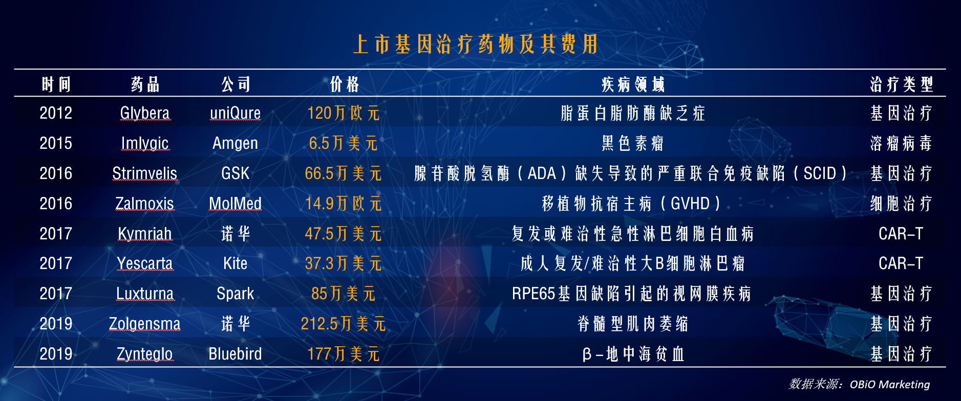 基因疗法是治疗和治愈疾病的最新药物创新之一,预计到2025年,每年将批准10到20种新的基因疗法。但是目前基因疗法的费用也是医药领域最昂贵的品类,治疗一个病人的药费从85万美元到210万美元不等,未来这一费用还将继续攀升(例如血友病的基因疗法预计200万到300万美元)。