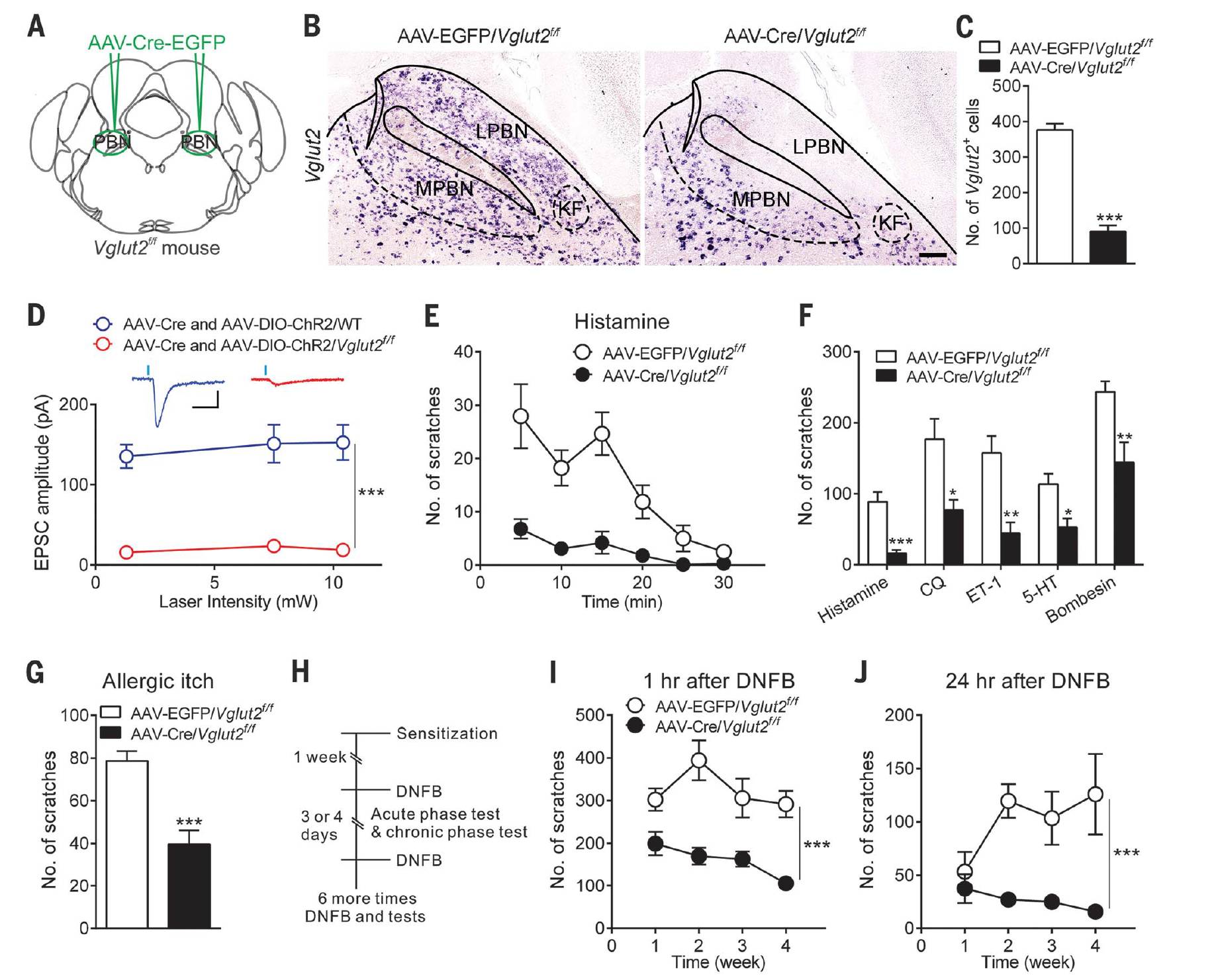 找到这样一条参与痒的通路后,作者重点验证这条通路在痒感受过程中的功能。
